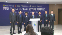 【 앵커멘트 】 정부와 광주시, 전남도, 그리고 무안군이 참여한 6자 협의체가 '군·민간 공항의 무안 통합이전'에 전격 합의했습니다. 광주·전남의 최대 현안이자 18년째 답보 상태였던 군 공항 이전 문제에 의미 있는 첫 걸음이 될 지 주목됩니다. 박성호 기자의 보도입니다. 【 기자 】 대통령실이 주도하는 광주 군 공항 이전 6자 협의체가 광주에서 첫 회의를 가진 직후 공동 합의문을 발표했습니다. 합의문에는 광주 군 공항을 무안군으로 이전하기로 하고, 광주시와 정부는 무안군의 지역 발전을 위해 총 1조