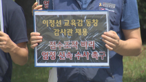 【 앵커멘트 】 검찰이 고교 동창을 광주시교육청 감사관으로 채용하는 과정에서 부당한 압력을 행사한 혐의를 받는 이정선 교육감에 대해 구속영장을 청구했습니다. 선거를 불과 6개월 앞둔 시점에 구속영장이 청구되면서 재선 도전이 유력한 이 교육감에게는 악재가 될 것으로 보입니다. 정경원 기자입니다. 【 기자 】 검찰이 직권남용 권리행사방해 혐의를 받는 이정선 광주시교육감에 대해 사전구속영장을 청구하고 신병 확보 절차에 나섰습니다. 이 교육감은 지난 2022년 8월 교육청 감사관 채용 과정에서 자신의 고교 동창이 최종 선발될 수 있