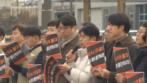【 앵커멘트 】 국회가 지역방송을 지원하기 위해 증액한 방송통신발전기금 150여억 원을 기획재정부가 일방적으로 삭감한데 대한 반발이 거세지고 있습니다. 이재명 대통령이 내일(11일) 기획재정부 업무 보고를 받을 것으로 예정된 가운데, 지역민영방송 노조 등 지역방송협의회는 대통령실에 호소문을 전달하며 예산 집행을 촉구했습니다. 지역민방공동취재단 현경아 기자입니다. 【 기자 】 9개 지역 민영방송과 지역MBC 노조로 구성된 지역방송협의회는 대통령실 앞에서 집회를 열고 지역 방송 지원 예산을 원안대로 집행할 것을 촉구한 뒤 호소문을